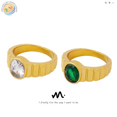 French ring color does not fade niche design retro style inlaid white green zircon food ring