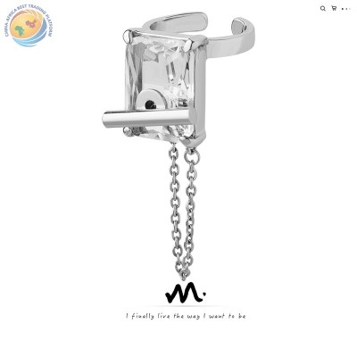 ins Wind Ring Accessories Personality Titanium steel Zircon set chain fringe open ring