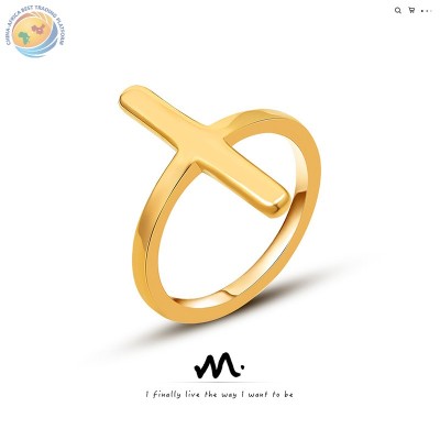 Japanese-korean cross ring ins Style Hip Hop personality titanium steel plated 18K gold ring