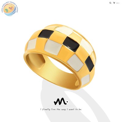 Europe and the United States ins style new hand decorated black and white checkerboard lattice titanium steel ring