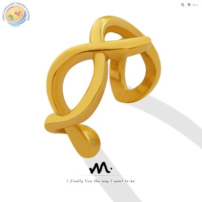 Korean electroplated 18-karat gold ring with irregular arc opening