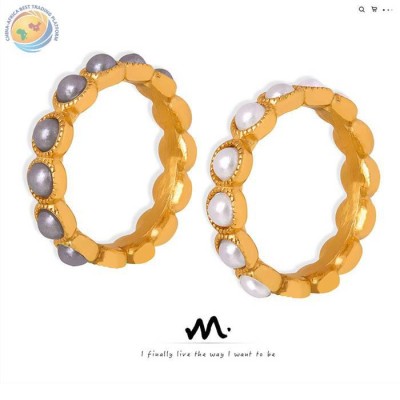 French retro Full Star Baroque high light shell bead temperament titanium steel ring ring for women