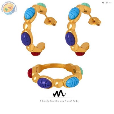 New vintage personality ring creative design earrings Titanium steel gold plated jewelry set