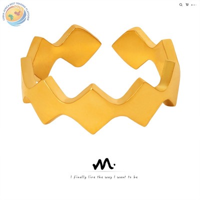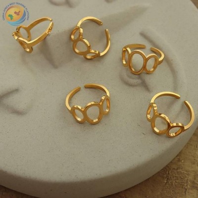 Stylish hollowed-out open ring creative design titanium steel plated 18k gold index finger ring