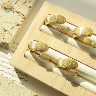ins cold wind shaped honeycomb mesh ring titanium steel 18k gold ring