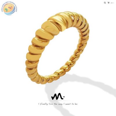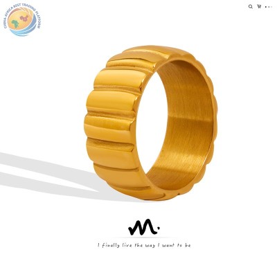 欧美ins风简约个性螺丝条纹多码戒指钛钢镀金指环