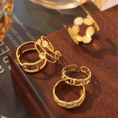 新款复古轻奢小众设计钛钢镀金镶钻戒指指环