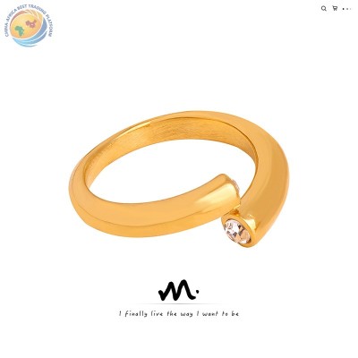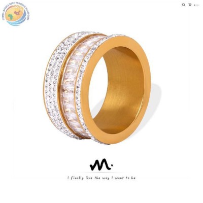 新款高级感轻奢时尚小众设计钛钢镀金镶锆石戒指