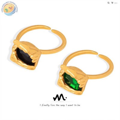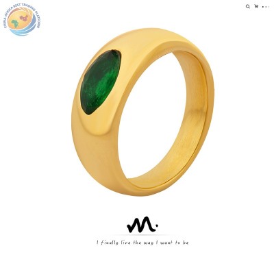 新中式个性钛钢不掉色镶嵌祖母绿锆石戒指