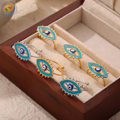 小众戒指砝码彩釉设计感恶魔之眼造型钛钢开口食指戒