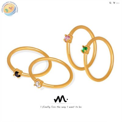 日韩简约素圈镶嵌多种颜色锆石小清新女指环戒指
