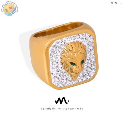 New European and American wind animal world titanium steel gold-plated lion head diamond ring