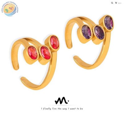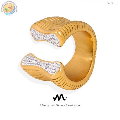 Europe and the United States new personalized fashion niche design titanium steel gold-plated diamond irregular opening ring
