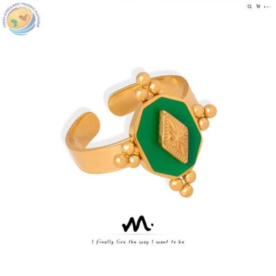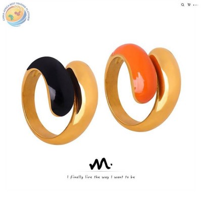 Retro light luxury personality palace style titanium steel gold-plated geometric enamel dripping open ring