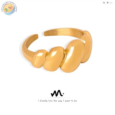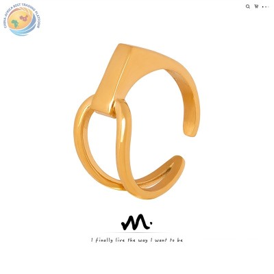 High-end sense niche design fashion profiled titanium steel gold-plated ring without fading open
