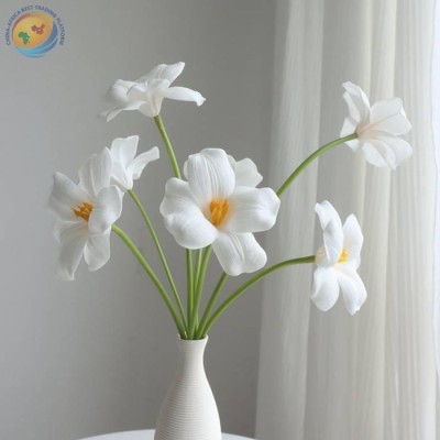 高档手感过胶单头大仿真白玉兰花塑料假花