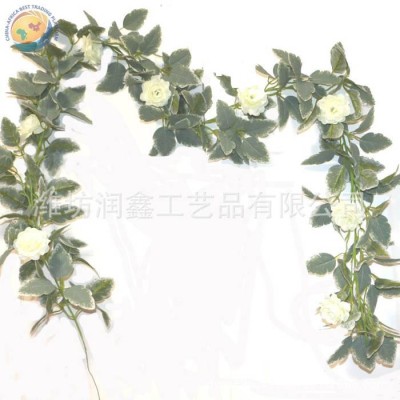 新款2米尤加利叶玫瑰花藤桉树叶金钱叶仿真藤条花环