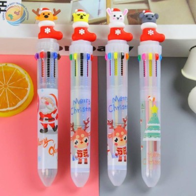 圣诞动物十色圆珠笔学生奖品礼物卡通彩色油笔