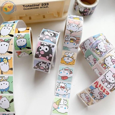 整卷封口贴可爱大耳狗贴纸卡通小票库洛米帕恰狗贴画