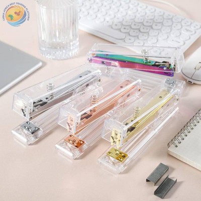 Nordic light luxury rose gold transparent stapler size square head office labor-saving stapler