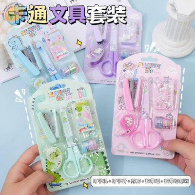 Cartoon stapler stationery set Scissors tape holder candy color stapler set combination