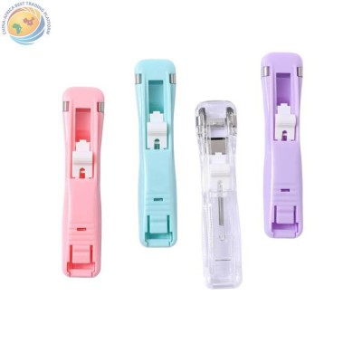 Macaron color seamless binding pusher clamp simple student stapler without staples