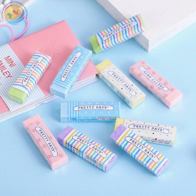 糖果色碎花条纹长条彩色橡皮擦学生橡皮文具礼品奖品