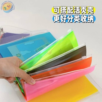热卖A5A6粉色蓝色黄色磨砂PVC拉链袋活页笔记本收纳袋
