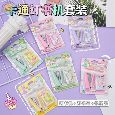 卡通订书机套装修正带组合高颜值糖果色学生文具办公