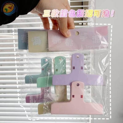 新款蓝绿粉紫拼色创意夹子办公用品文件票据夹