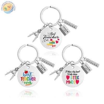 欧美彩印感恩教师节圆规尺子款金属刻字钥匙扣