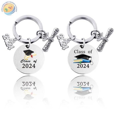 钥匙扣不锈钢圆形彩印2024毕业季礼物礼品刻字金属钥匙扣