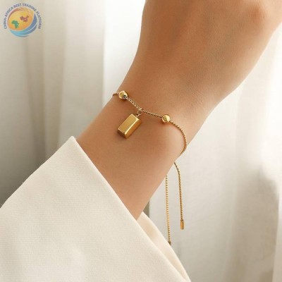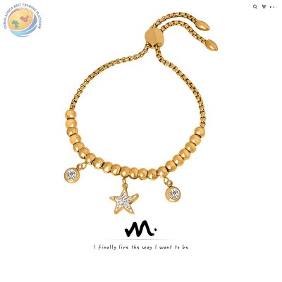 French small jewelry pull button can adjust the size of the gold bric steel ball bracelet