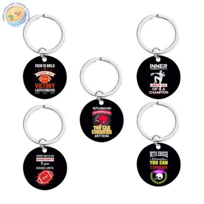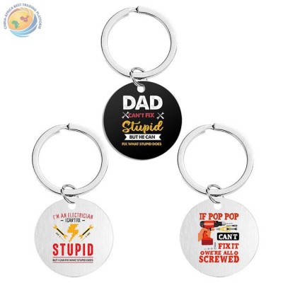 Color printed stainless steel round brand key chain Hipster Father\'s Day gift metal key chain