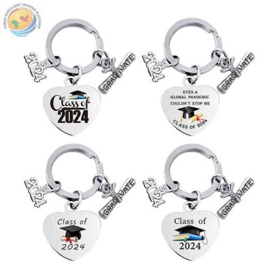 Stainless steel heart color print 2024 graduation season gift engraved keychain