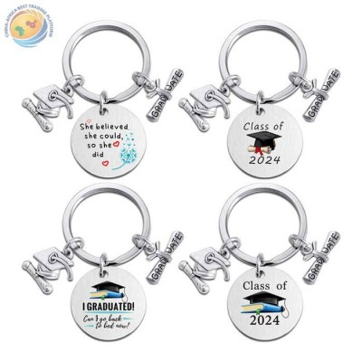 不锈钢圆形新款2024毕业季礼物礼品刻字金属钥匙扣