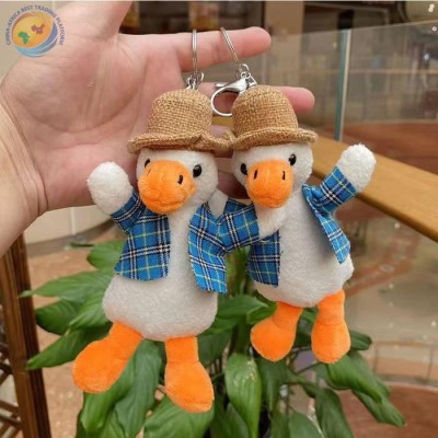 草帽鸭毛绒公仔钥匙扣可爱沙雕鸭包包挂件