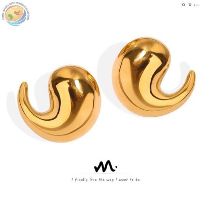 法式气质款扭纹C形耳环钛钢镀镀18K真金不规则耳饰