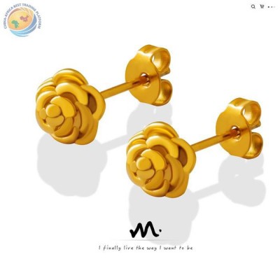 镀金玫瑰花朵耳钉韩系小香风可爱百搭小众设计耳饰