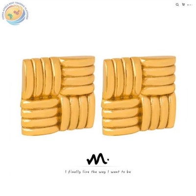 高级感个性复古创意钛钢镀金几何方形条纹耳环