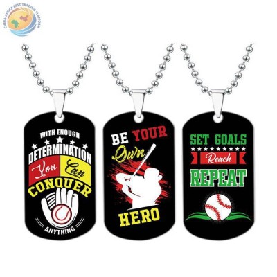 钛钢项链彩印款垒球棒球运动励志不锈钢项链