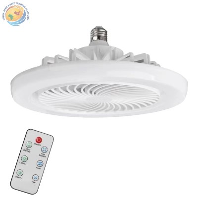 易于安装的迷你插座风扇可调光3风速遥控底座封闭式E27吊扇用于卧室厨房