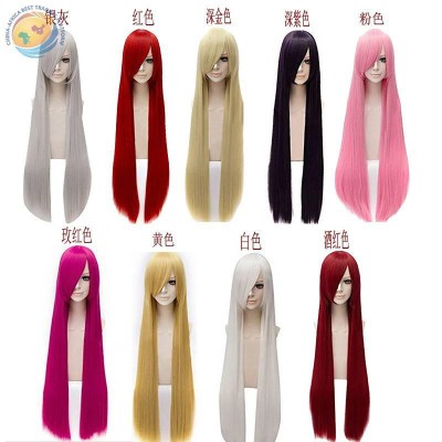 cosplay动漫1米 红 蓝 绿 粉 黄色玫瑰网黑色多色长直发cos现货