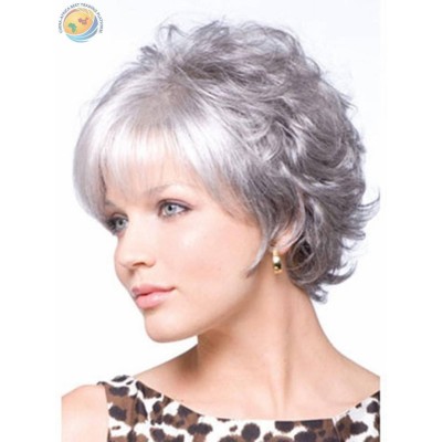 外贸假发中老年人短卷发奶奶灰花白色短发蓬松逼真假发套一件代发