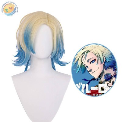 蓝色监狱 凯撒 cos假发 染色渐变款分层小拖尾 cosplay动漫假发套