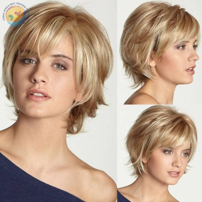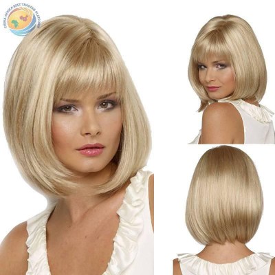 外贸欧美速卖通假发女士齐刘海bobo波波头金色短发高温丝短直发套