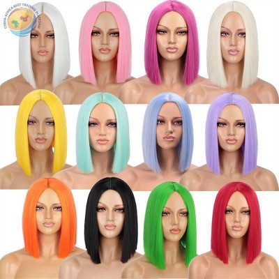 假发 欧美女士假发 时尚短发蓬松彩色bobo头 中分短直发化纤头套