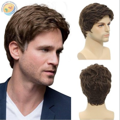 外贸新品欧美男发 机制化纤男士假发 男短发棕色商务造型工厂现货