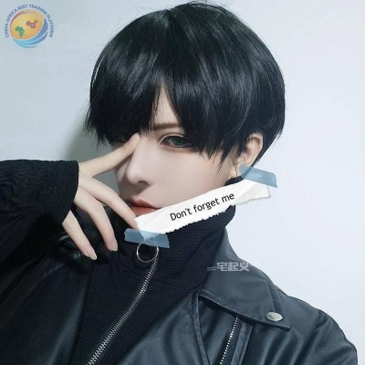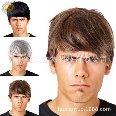 新款男士假发帅气男发学生头短直发黑色高温丝化纤发动漫cos假毛