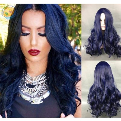 欧美化纤假发 女款时尚新款藏蓝色大波浪长卷发假发头套现货批发